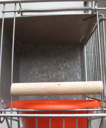 –Μια φωτογραφία, απο έναν Άγγλο εκτροφέα, που μας δείχνει τον τρόπο να γλυτώσουμε κάποια «ατυχήματα» την αναπαραγωγική περίοδο.Πολλές φορές η απειρία των θηλυκών πουλιών οδηγεί σε άσχημες κατασκευές φωλεών.Η συνηθέστερη κακοτεχνία, προκύπτει απο το υπερβολικό «γέμισμα» της φωλιάς με υλικό. Το πάθος των νεαρών θηλυκών τις οδηγεί σε υπερβολές που τελικά έχουν άσχημες συνέπειες.Μια ρηχή φωλιά δεν προσφέρει ασφάλεια στους νεοσσούς.Συνήθως η μεγάλη παραμονή στην φωλιά του θηλυκού γίνεται αιτία να «κολλήσουν» στην κοιλιά τα αυγά ή ακόμα χειρότερα τα δυο-τριών ημερών μικρά. Ενα απότομο ή απρόσεκτο σήκωμα και το μικρό βρίσκεται στο πάτο του κλουβιού. Τοποθετώντας στο κατώφλι της φωλιάς σε ύψος 1-1,5 πόντου, αυτήν την μικρή πατήθρα, αναγκάζουμε το θηλυκό να κάνει εκεί την πρώτη στάση. Τις περισσότερες φορές αυτή η λίγων δευτερολέπτων αναμονή εκεί, είναι αρκετή για να «πέσει» ο νεοσσός ή το αυγό πάλι στην φωλιά. Αλλά προσφέρει και μια ωραία εξέδρα, κατά την περίοδο που ετοιμάζονται τα μικρά για την πρώτη αναχώρηση απο την φωλιά, για το πρώτο πέταγμα. Καλόν είναι να έχουμε προετοιμασθεί απο πριν, κόβοντας αρκετά τέτοια «πατηθράκια» , ώστε να έχουμε δυνατότητα αλλαγής, καθαρισμού και χρησιμοποίησής τους σε όλες μας τις φωλιές.