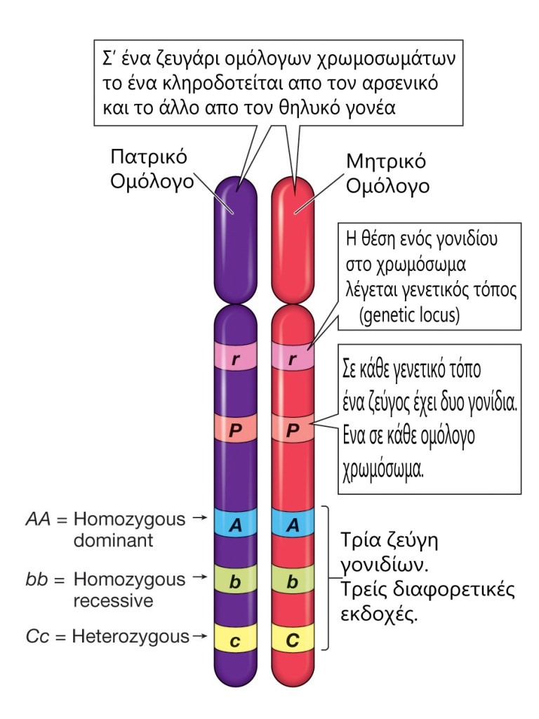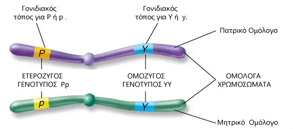 Φορείς αυτών των εκδοχών είναι τα χρωμοσώματα. Την πληροφορία ενός χαρακτηριστικού την φέρουν πάντα δύο χρωμοσώματα. Τα χρωμοσώματα αυτά, συγκροτούν ζεύγη, λέγονται ομόλογα και είναι όμοια ως προς τη λειτουργία τους. Δεν είναι απαραιτήτως ίδια, απλώς ελέγχουν τα ίδια χαρακτηριστικά. Κάθε μέλος των ομόλογων χρωμοσωμάτων, έχει κληρονομηθεί κατά αντιστοιχία απο τους γεννήτορες, κάθε ζεύγος δηλαδή, αποτελείται από ένα πατρικό και ένα μητρικό αντίγραφο χρωμοσώματος.
