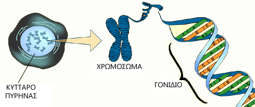 Τα γονίδια είναι μικρά και συγκεκριμένα τμήματα της αλληλουχίας των βάσεων του DNA. Bρίσκονται επί των χρωμοσωμάτων και είναι εξ ορισμού οι φορείς της γενετικής πληροφορίας.