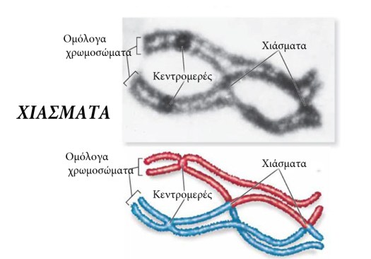 Κατά την πρώτη μειωτική διαίρεση και πιο συγκεκριμένα στα αρχικά στάδια της πρόφασης, παρατηρείται ένα εξαιρετικό βιολογικό φαινόμενο, η σύναψις των ομόλογων χρωμοσωμάτων. Οι συνάψεις αυτές, που μικροσκοπικά φαίνονται σαν χιάσματα, ερμηνεύτηκαν επιστημονικά στις αρχές του 1909. Λόγος ύπαρξής τους είναι η αποφυγή λαθών που θα οδηγούσαν σε αριθμητικές χρωμοσωμικές ανωμαλίες κατά την κυτταρική διαίρεση.